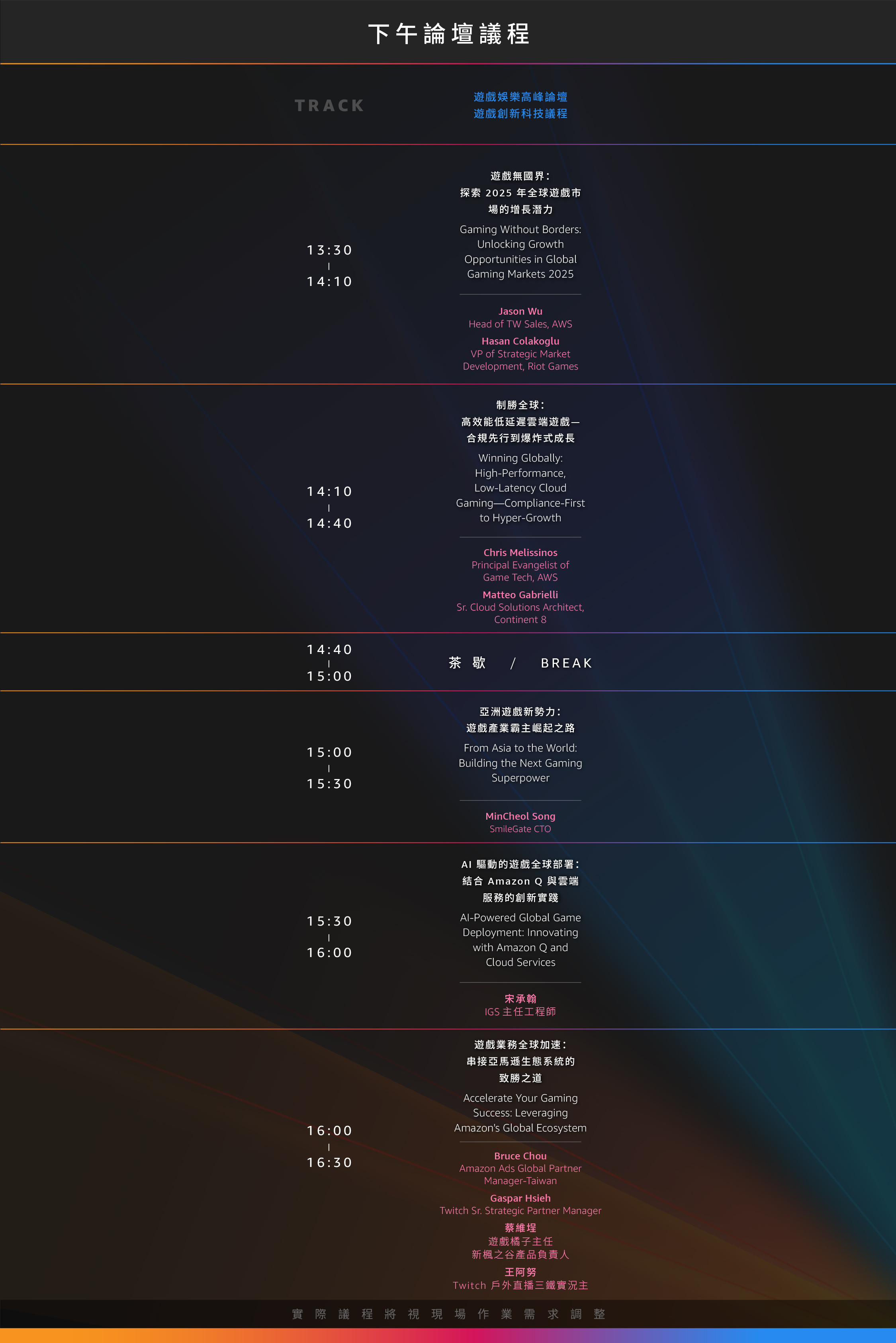 來自美國、日本、韓國、新加坡等全球遊戲娛樂強國的產業專家 ,與台灣遊戲開發先驅齊聚一堂,深入探討2025遊戲產業的無限可能!